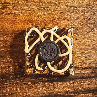 Rich dark chocolate brownie layered with slow-cooked Dulce de Leche and finished with a hint of chocolate ganache.
